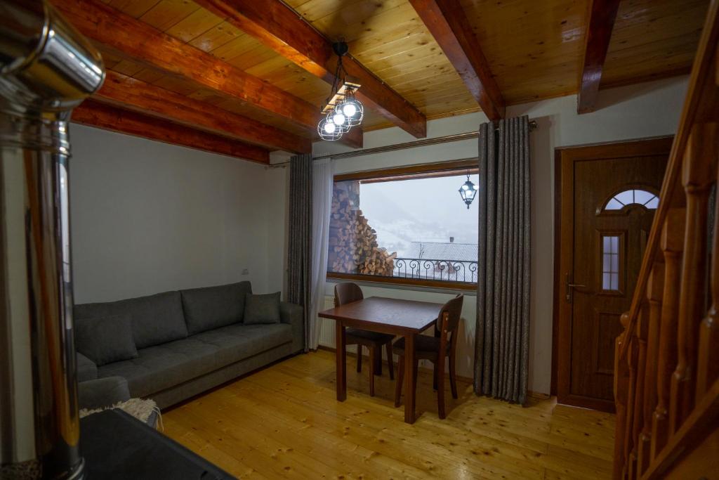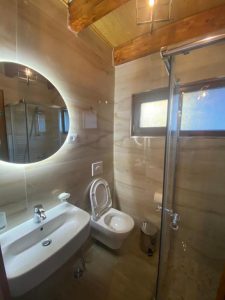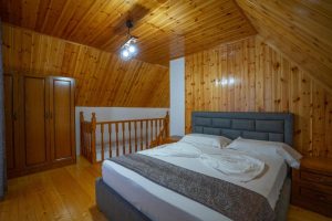 Hotel Alpini features cozy, well-appointed rooms designed with both comfort and alpine charm in mind. Large windows provide panoramic views of the surrounding peaks and valleys, allowing guests to wake up to the serene beauty of Lepushë. The hotel’s architecture combines traditional stone and wood elements with modern amenities, creating a welcoming atmosphere that blends nature and comfort seamlessly.