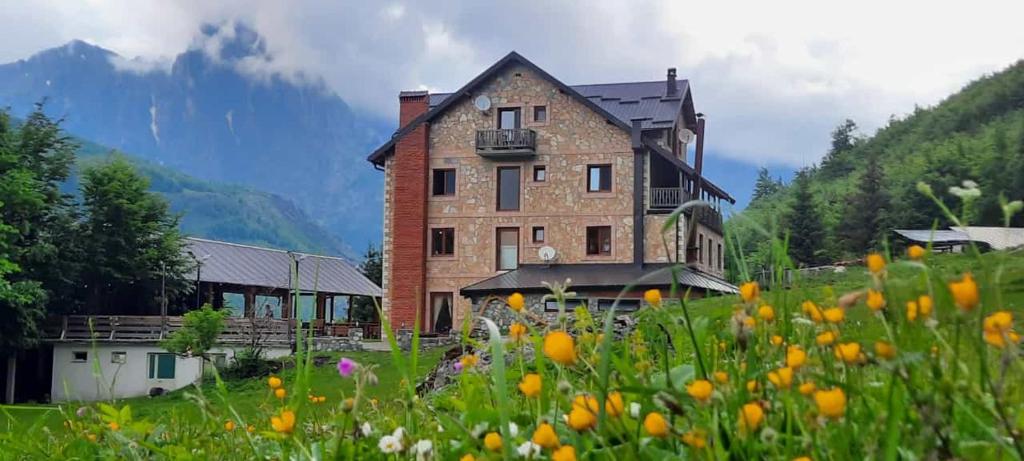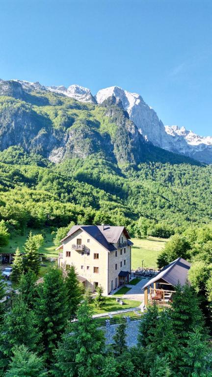 The hotel features cozy and well-appointed rooms designed to provide both comfort and a connection with the surrounding nature. Large windows offer stunning panoramic views of the mountains and valley, allowing guests to wake up to the serene beauty of Valbonë. The warm and welcoming atmosphere ensures every guest feels at home during their stay.